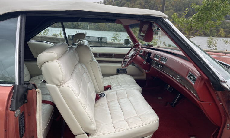 Step back into timeless luxury with this 1976 Cadillac Eldorado Finished in Emberglow Firemist paint over a white leather interior with Firethorn carpets. This Eldorado represents the final year of Cadillac’s full sized convertibles and remains one of the most iconic American classics ever built.